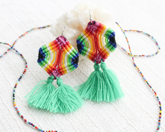 Aretes Tejidos Colores Verde Claro
