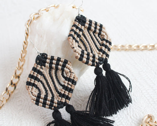 Aretes Tejidos Negro Beige Marrón