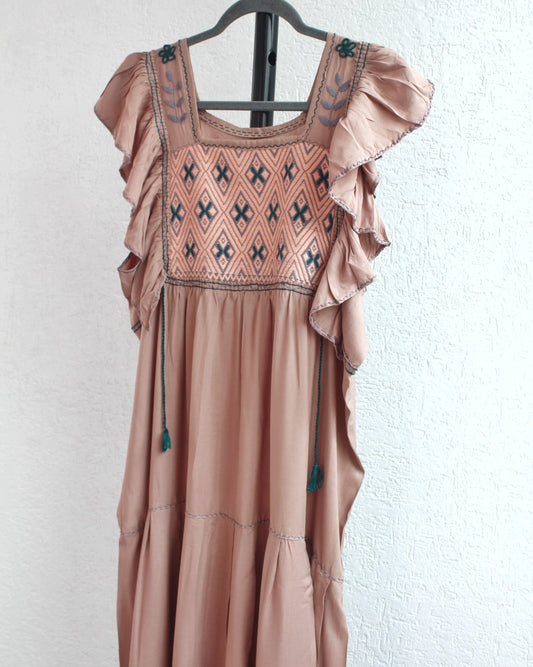 Vestido Julia Flores Manga XL / XXL Café Claro