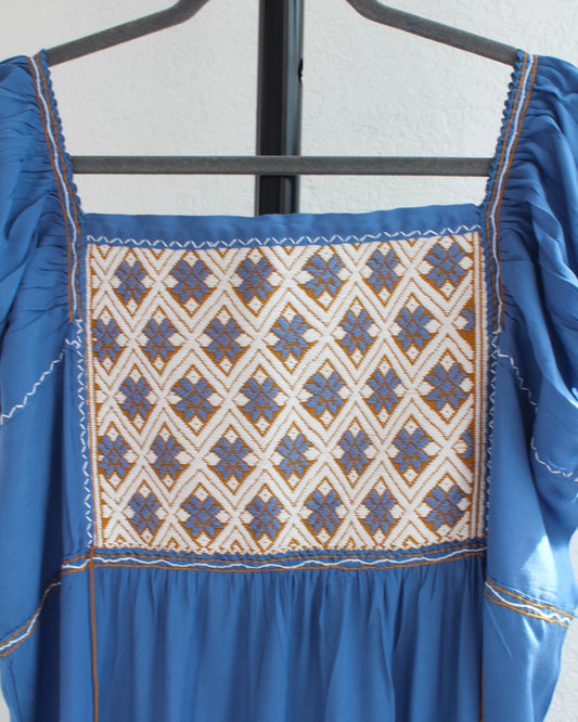 Vestido Gloria Azul Blanco Amarillo M -L