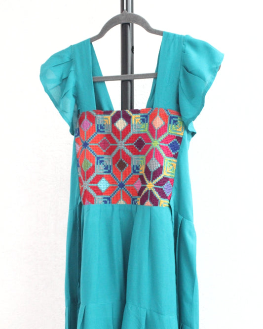 Vestido Antonia Azul Turquesa Amarillo