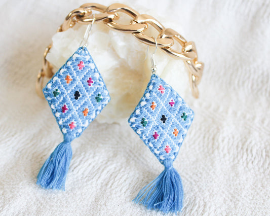 Aretes Cosmos Rombos Azul Claro