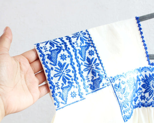Blusa Tradicional Bordada Rosas Azul Claro L - XL