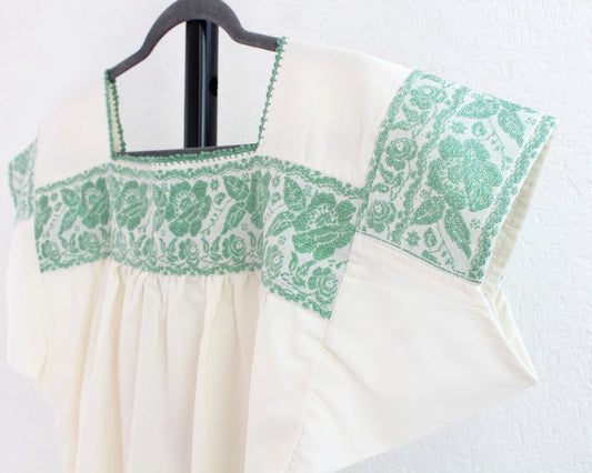 Blusa Tradicional Bordada Rosas Menta L - XL