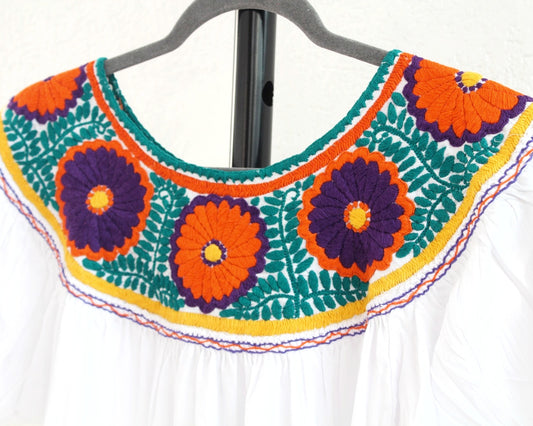 Blusa Aguacatenango Blanco Naranja Verde Morado