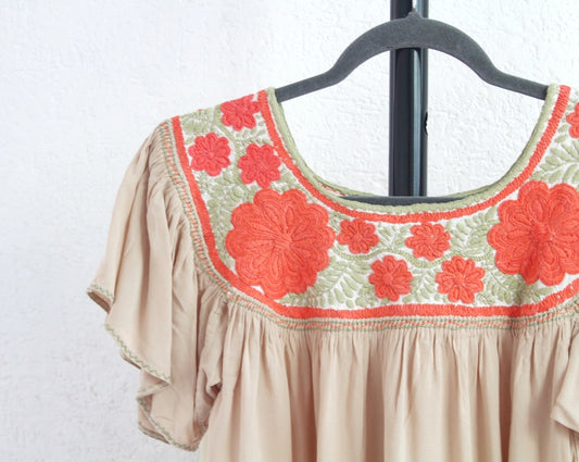 Blusa Aguacatenango Beige Naranja Verde
