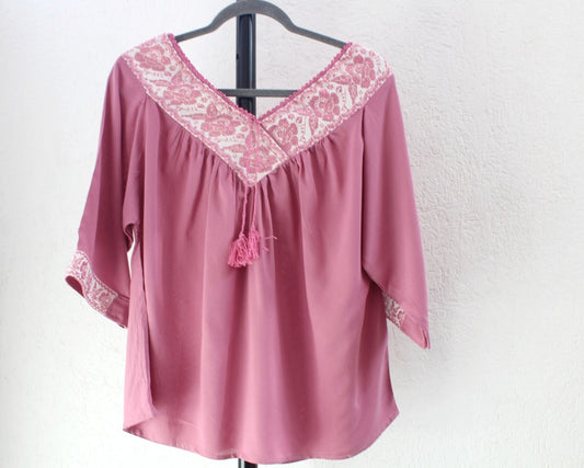 Blusa Cuello V Palo de Rosa Rosas