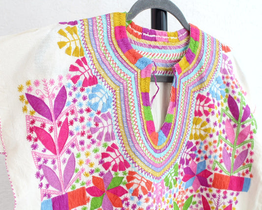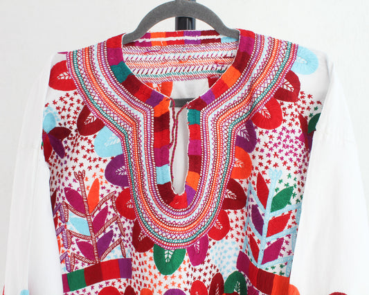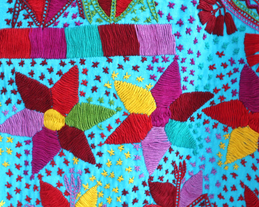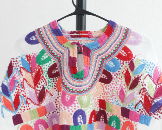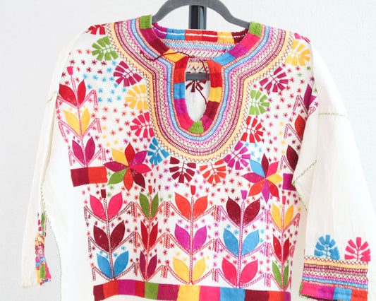 Blusa Tradicional Bordada Flores Líneas Colores CH