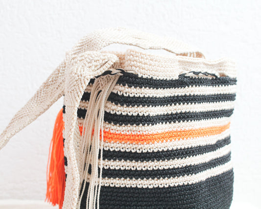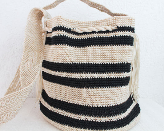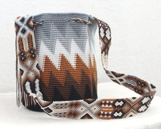 Bolso Morral Zig Zag Vino Mostaza Blanco