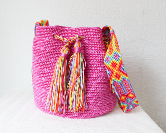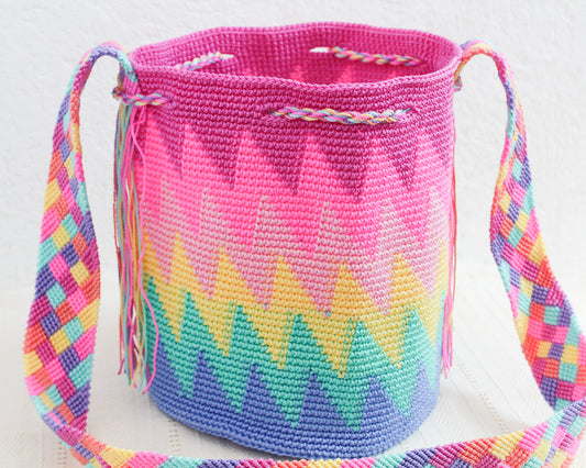 Bolso Morral ZigZag Rosa Amarillo Aqua