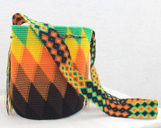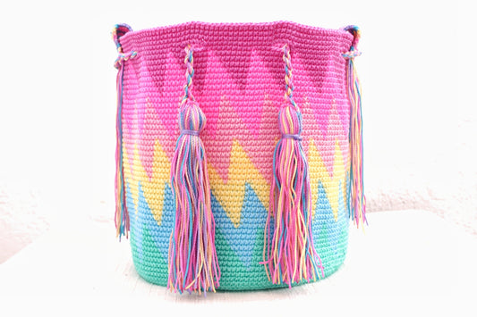 Bolso Morral Rombos Rosa Amarillo Azul Pastel
