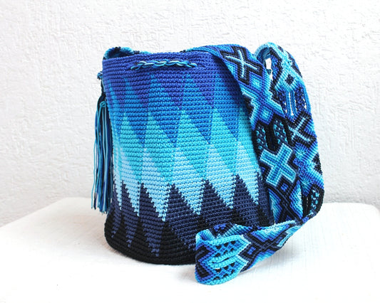 Bolso Morral Zig Zag Vino Azul Mostaza