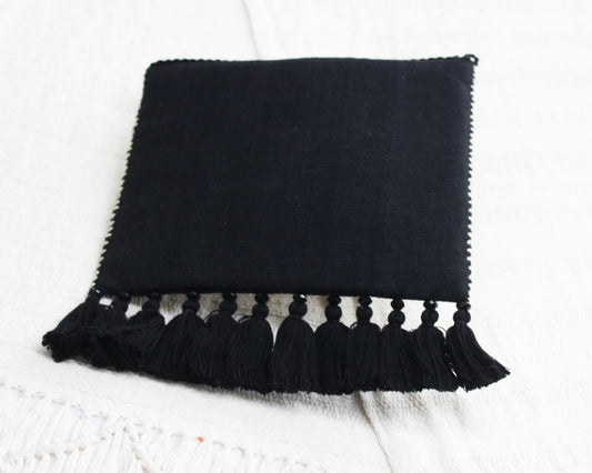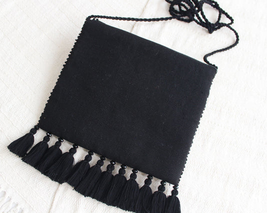 Bolso Telar Pompones Estrellas Crema Negro