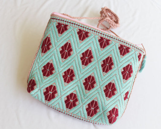 Bolso Telar Flores Terracota Turquesa