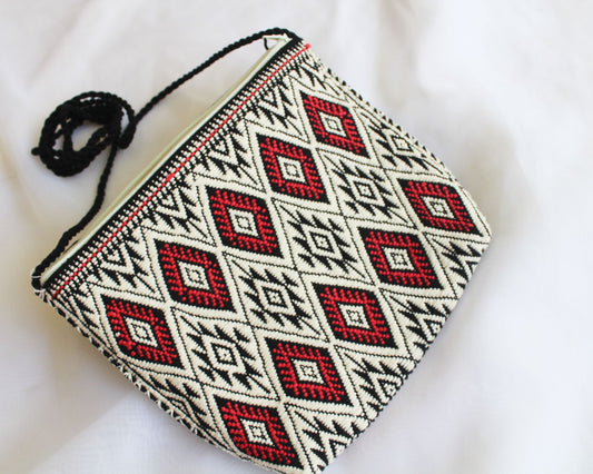 Bolso Telar Estrellas Blanco Rojo y Negro