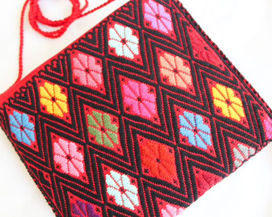 Bolso Telar Flores Colores Rojo