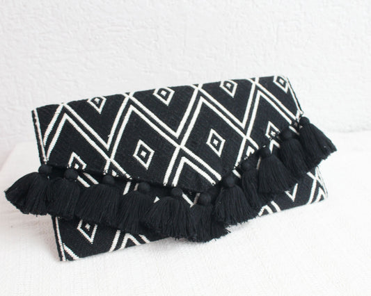 Clutch Artesanal "BATS’I LUCH" Negro Blanco