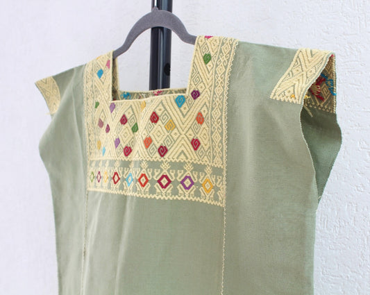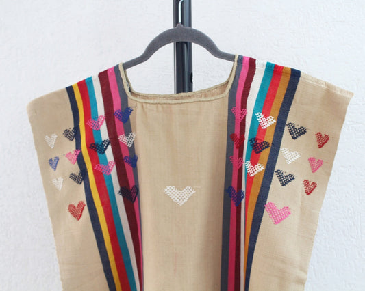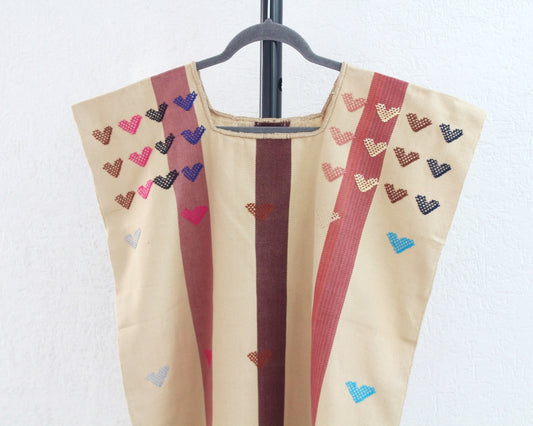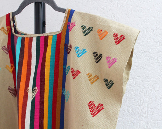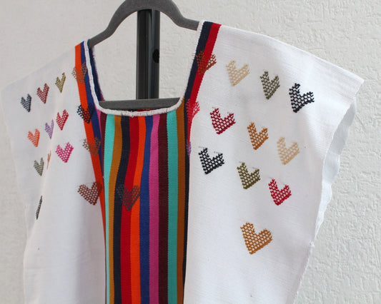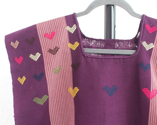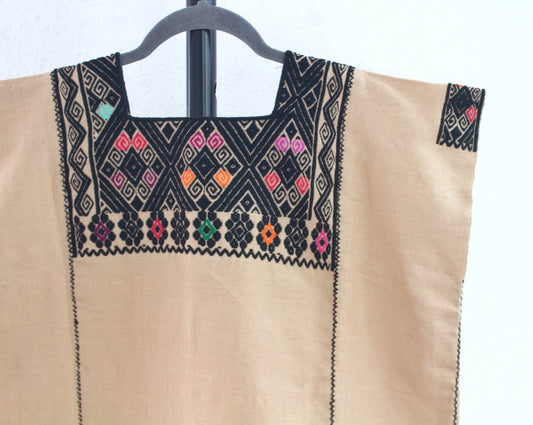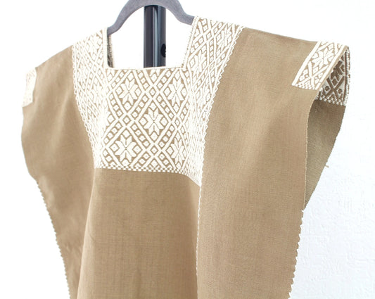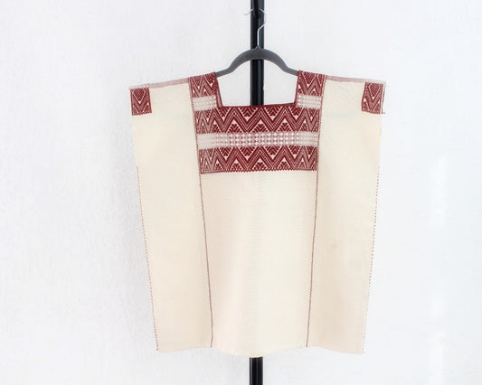 Huipil Corto Laura XL - 2XL Pejel Vino Crema