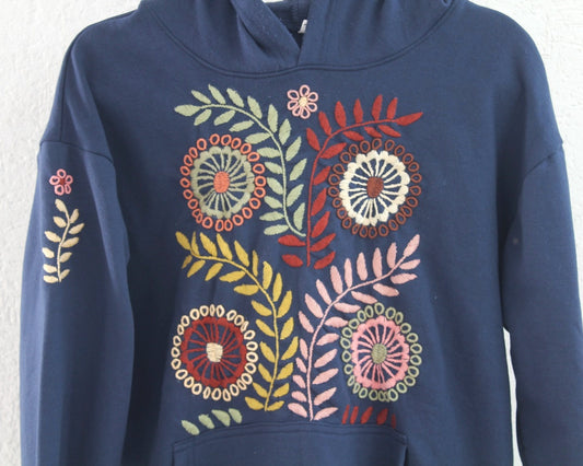 Sudadera XL Rococo Azul Marino Florecitas