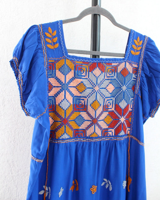 Vestido Lety XXXL - 4 XL Blanco Pajaritos Azul Rey