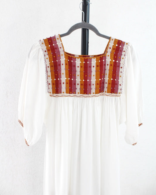Vestido Nuditos 3/4 Manga Blanco Marrón