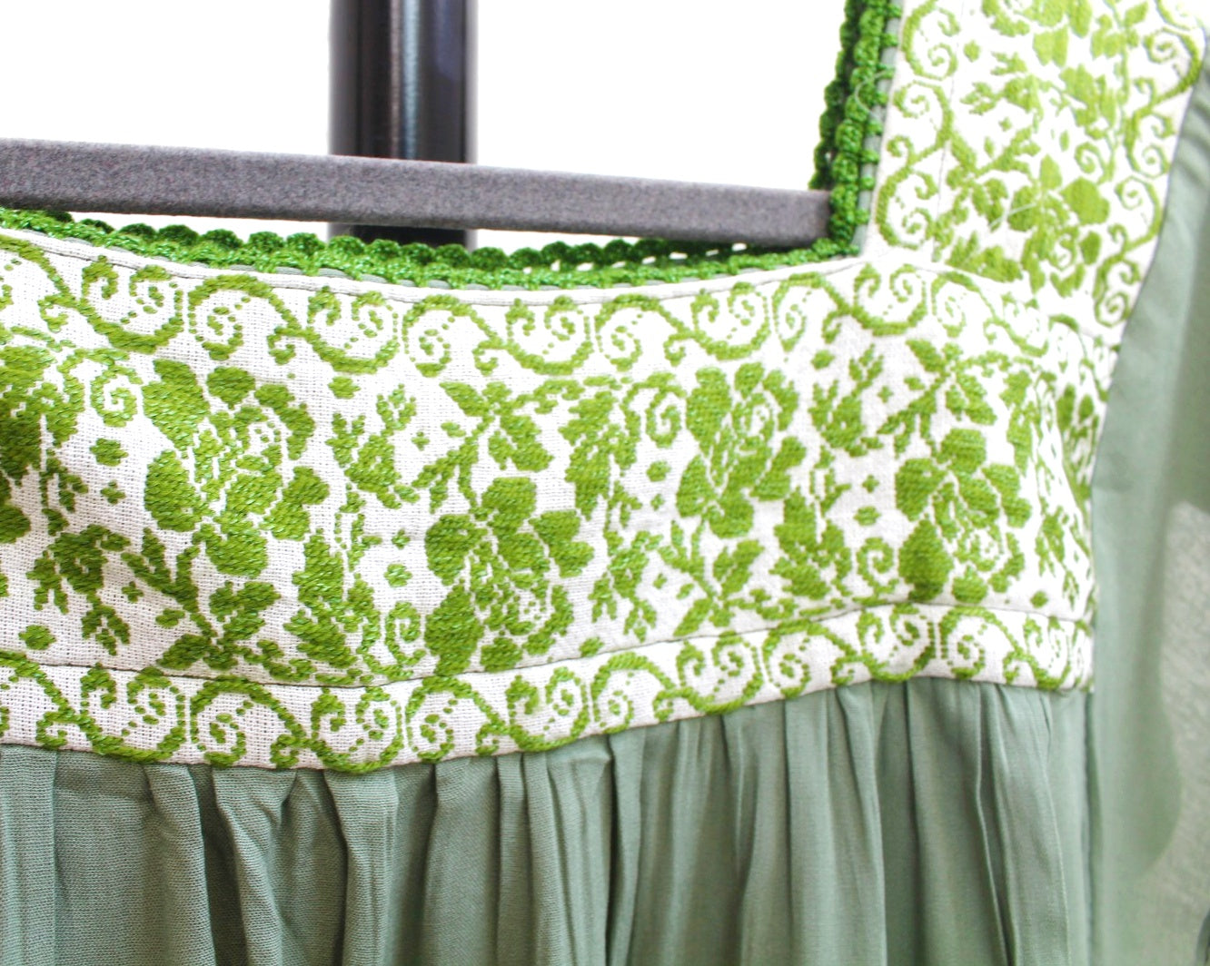 Blusa tradicional con hermoso bordado en técnica de hilvanado elaborado a mano por la señora Tania artesana mexicana de la región de la Sierra Puebla, el bordado representa lindas rosas y hojas bordado con hilo de color verde sobre un lienzo blanco y tela rayón color verde menta