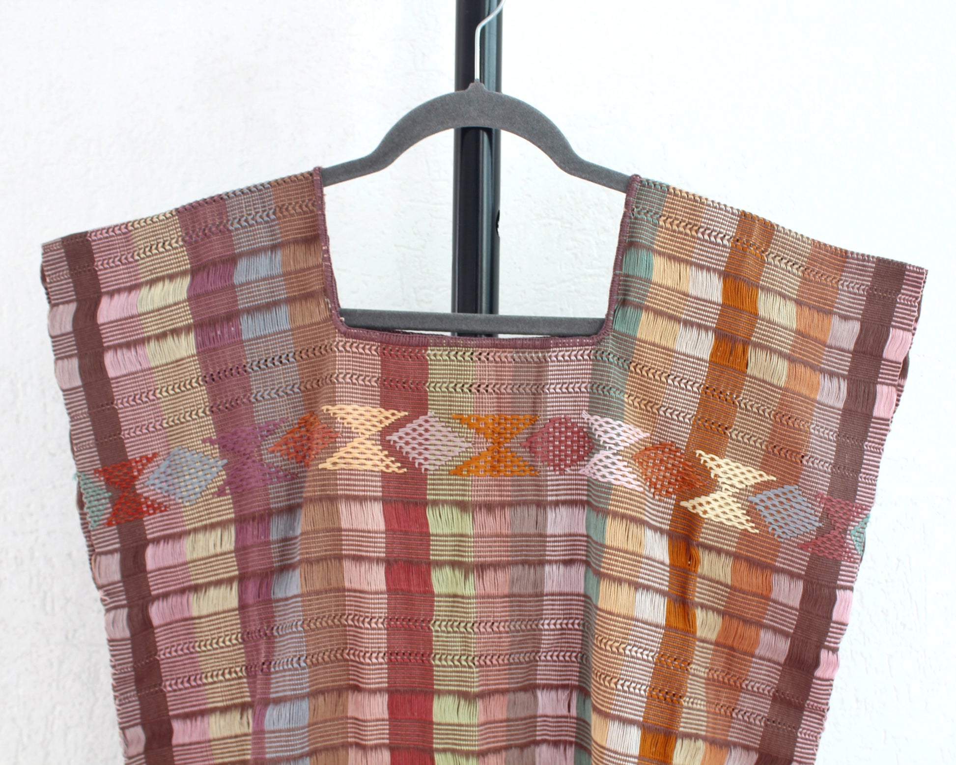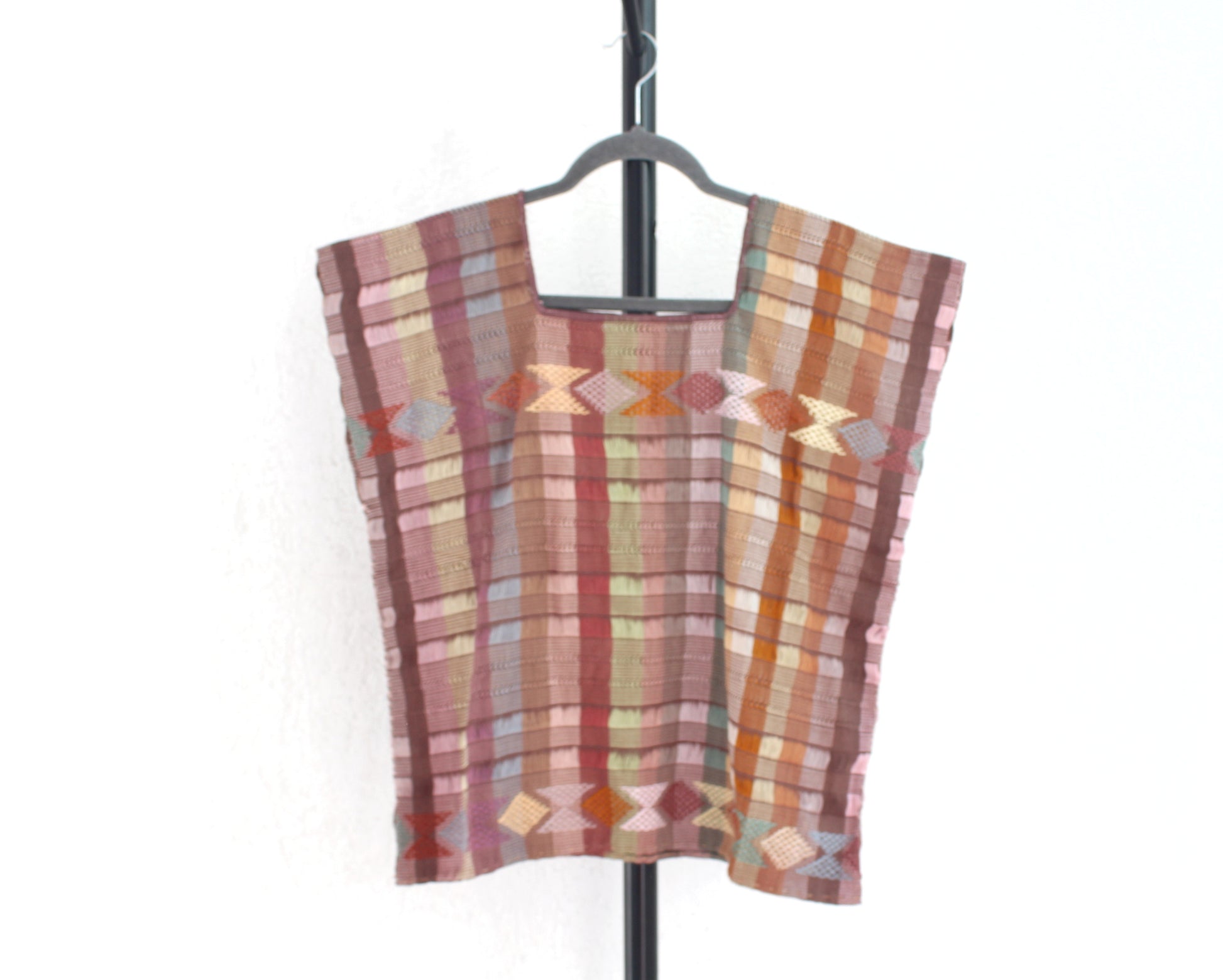 Esta blusa ha sido confeccionada a mano utilizando hilos de algodón en el artesanal método tradicional del telar de cintura con hermosos brocados que destacan el estilos de la comunidad de zinacantán que dstana hermosos rombos de colores en la parte de abajo