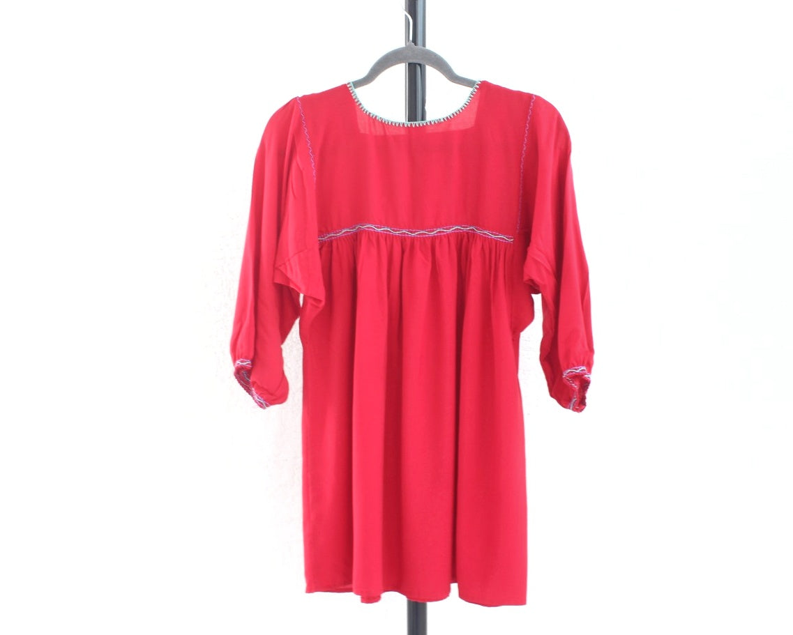 Blusa con detalle de nuditos en el cuello por el frente que se elabora en telar de cintura y uniones a mano mangas 3/4 y tela muy fresca ideal para los días calurosos color rojo.