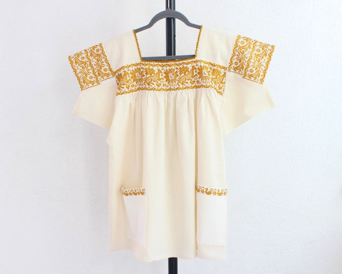 Blusa tradicional con hermoso bordado en técnica de hilado elaborado a mano por mujeres artesanas mexicanas de la región de la Sierra Puebla, el bordado representa hermosos burritos y flores en el campo con delicados detalles que forman un mágico dibujo de hilos de color verde sobre tela manta natural que destacan los bellos bordados.