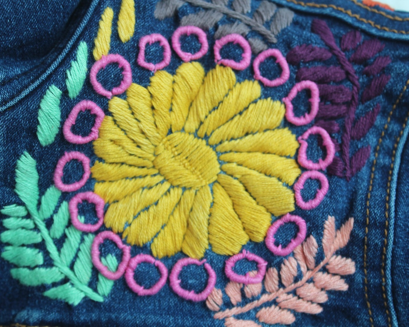 Esta prenda única y especial cuenta con un hermoso bordado de milpa hecho a mano en hilos de colores pastel realizado por artesanas mexicanas, brindándote un look auténtico y original