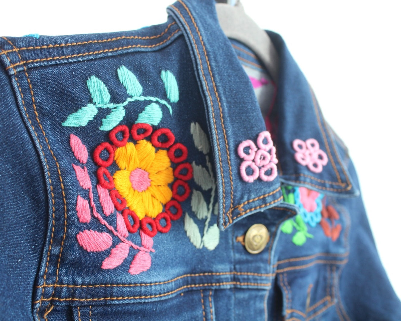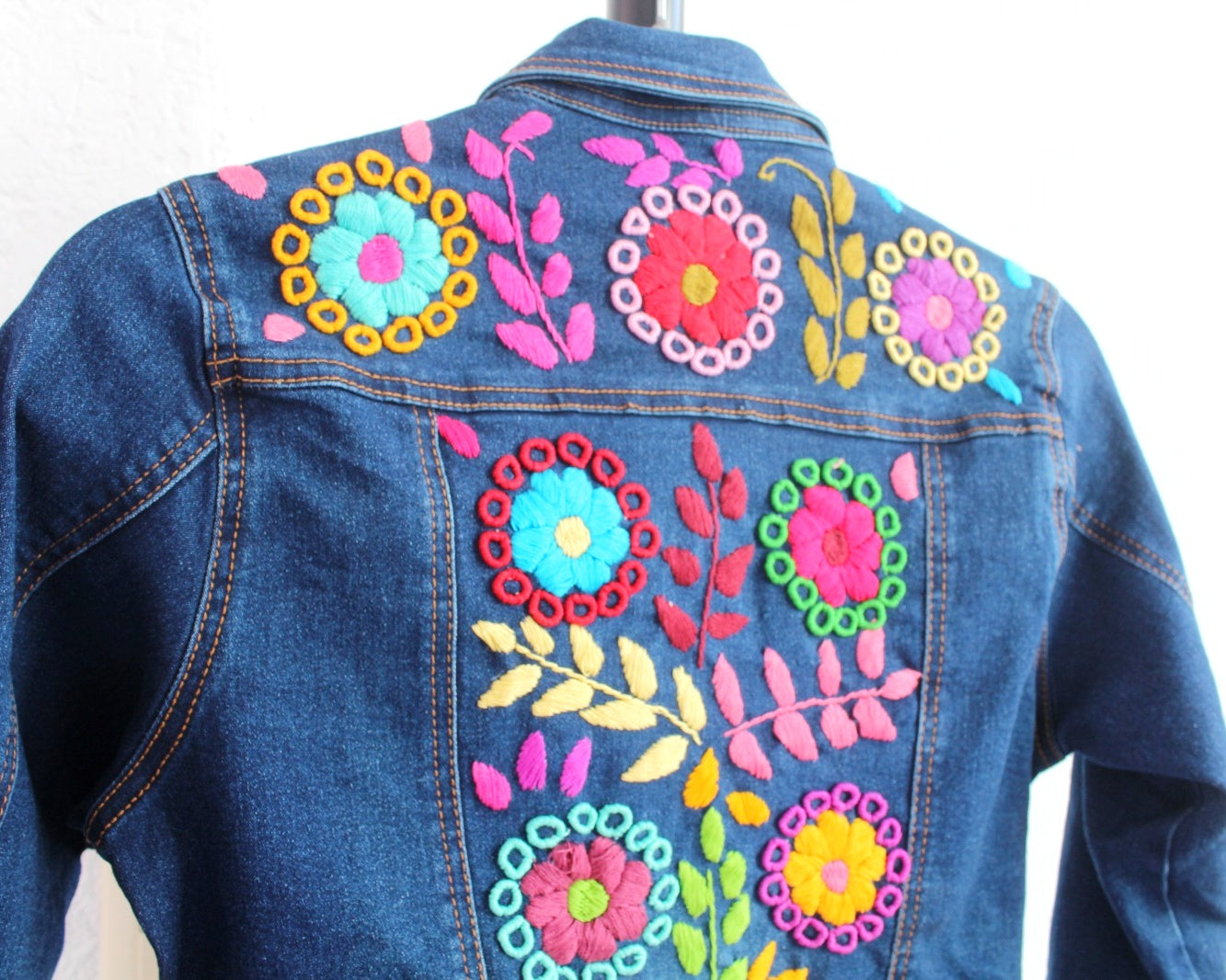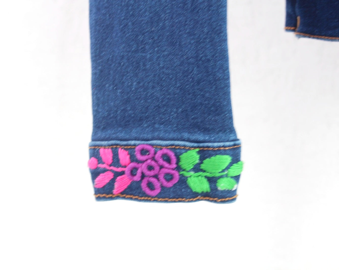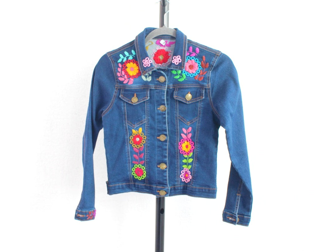 Esta prenda única y especial cuenta con un hermoso bordado de rococo hecho a mano en hilos de colores realizado por artesanas mexicanas, brindándote un look auténtico y original