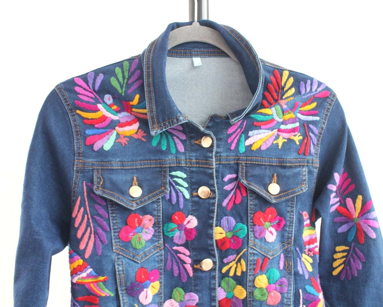 Atrévete y lleva tu estilo al siguiente nivel con la Chamarra Mezclilla Tenangos de colores .