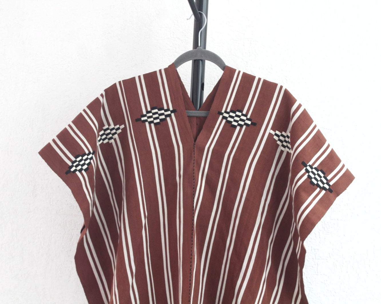 Hermosa combinación de color café y líneas blancas y negras muy delgadas que logran una prenda única.