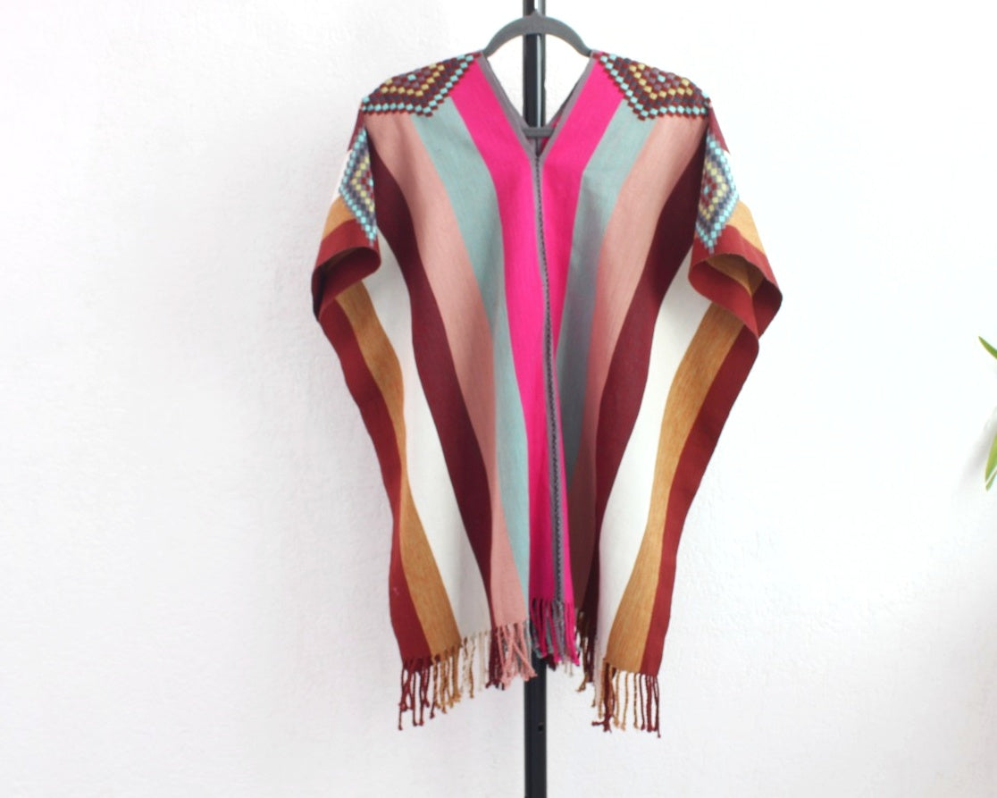 Eleva tu estilo con este jorongo artesanal hecho a mano en telar de cintura, utilizando dos lienzos que se entrelazan para crear una pieza única y elegante. Añade un toque de herencia y sofisticación a tu guardarropa con este accesorio atemporal y único en su clase.