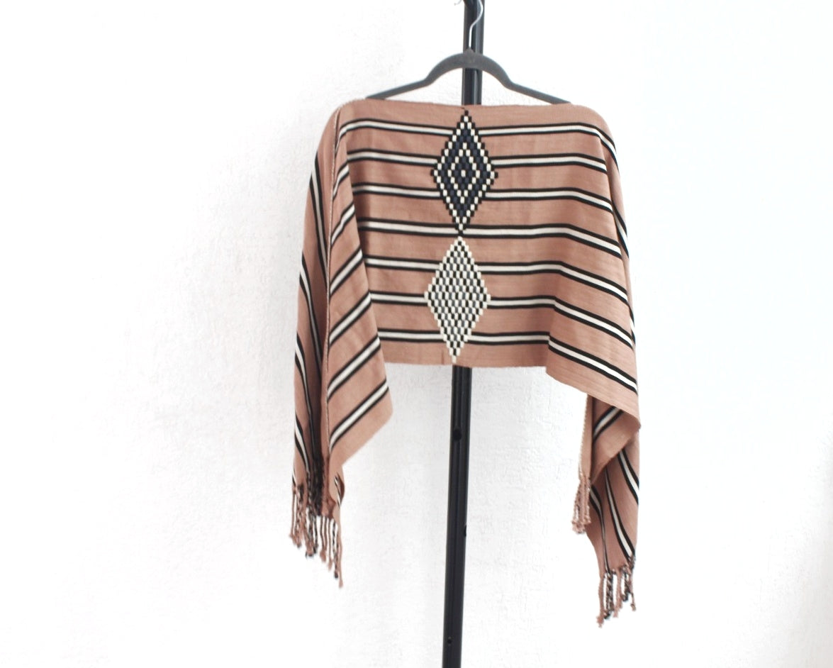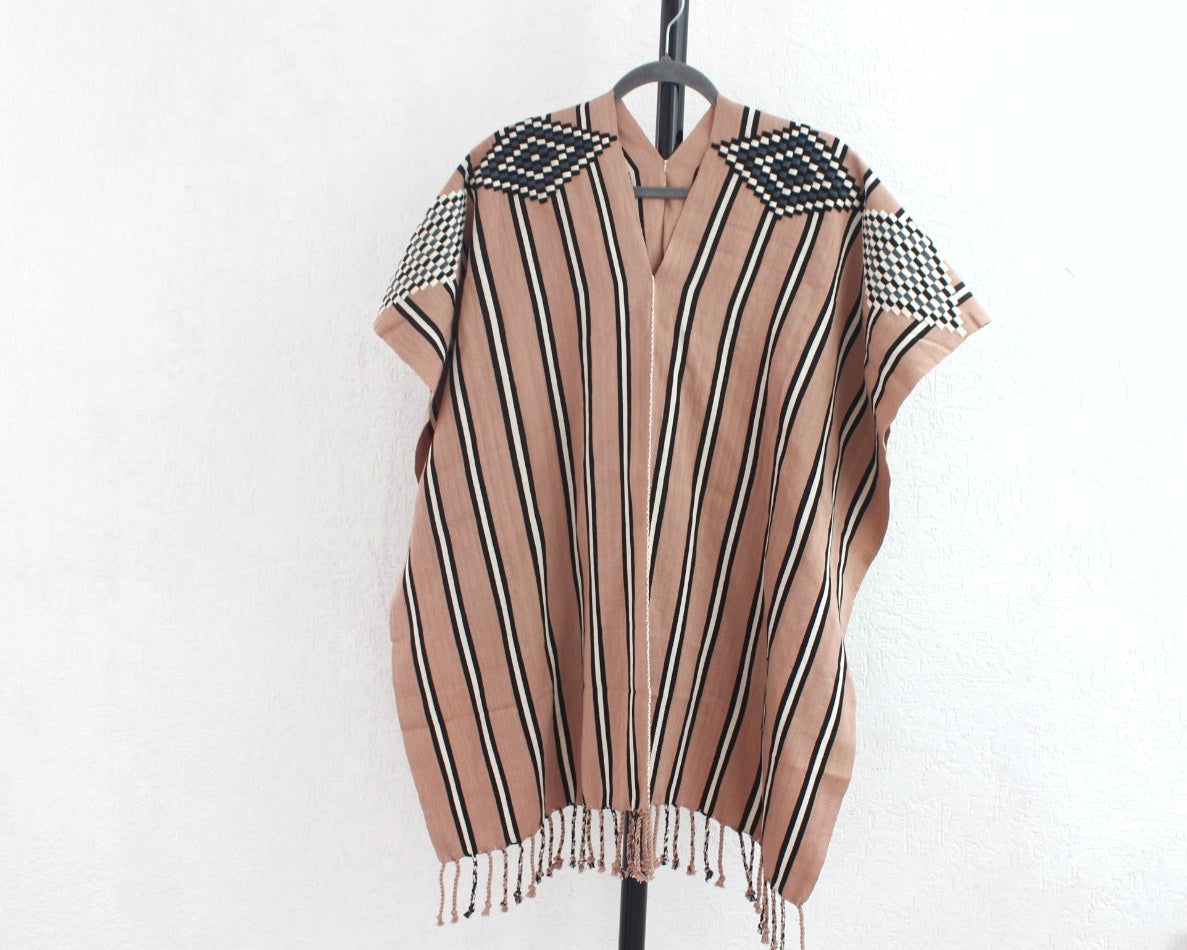 Eleva tu estilo con este jorongo artesanal hecho a mano en telar de cintura, utilizando dos lienzos que se entrelazan para crear una pieza única y elegante. Añade un toque de herencia y sofisticación a tu guardarropa con este accesorio atemporal y único en su clase.