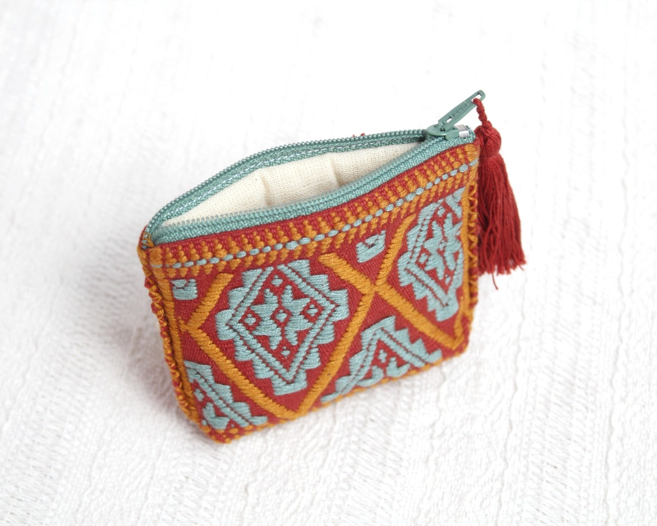 Mini Monedero elaborado a mano por artesanas mexicanas en telar de cintura con hilos de algodón con los que forman hermosos brocados que reflejan hermosas estrellas