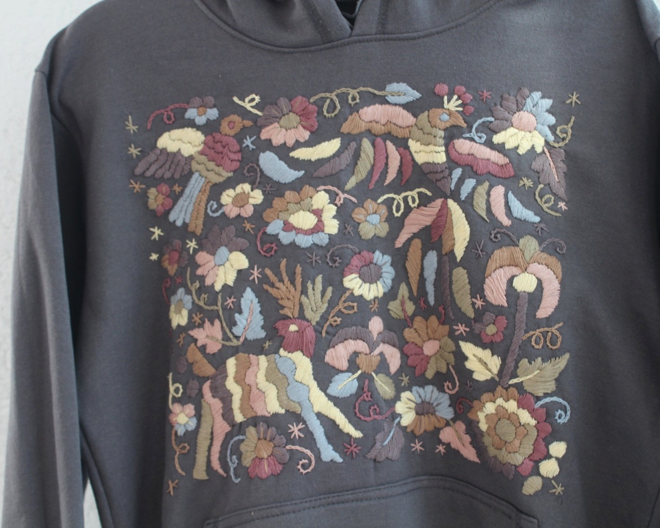 Hemrosa sudadera con bordados de Tenagos que dibujan hermosos animales y flores con hilos de colores que destaca al frente de esta fabuloso prenda cómoda y básico para tu guardarropa.