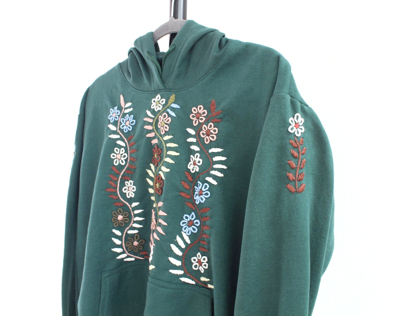 ¡Destaca tu estilo con nuestra sudadera con hermosas florecitas bordadas a mano en técnica de Rococo !