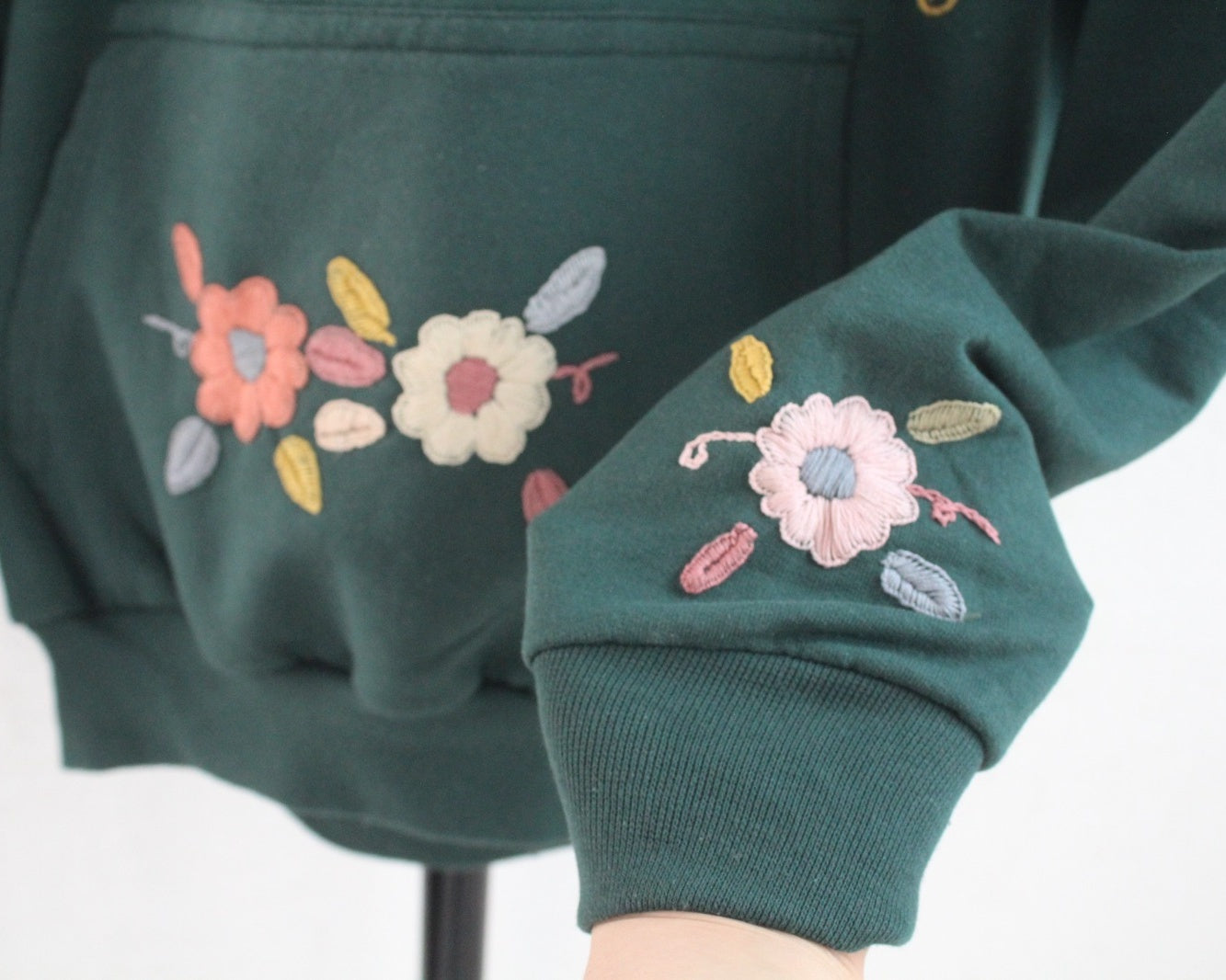 Hemrosa sudadera con bordados de Tenango a mano que destaca al frnete de esta fabuloso prenda cómoda y básico para tu guardarropa.